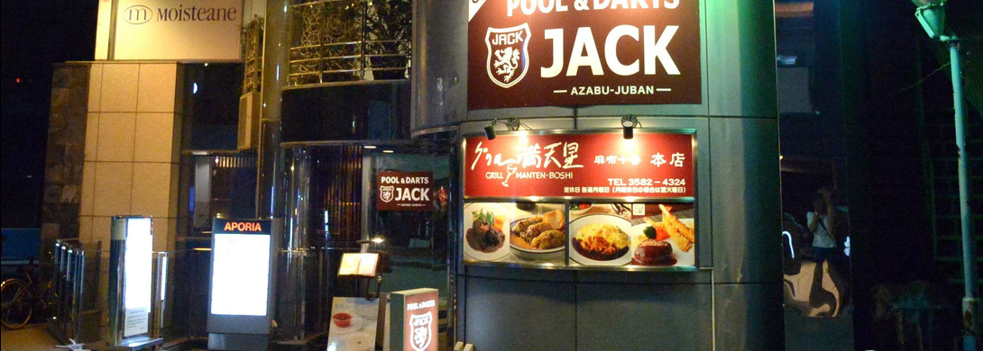 JACK麻布十番店 since2002.05/2025.08 ダーツライブ3 6台/ライブ2 1台/ ビリヤード 1台 ダーツ・ビリヤード料金 投げ放題・撞き放題お一人様 30分 400円(自動延長) ソフトドリンク 530円よりBEER 780円よりカクテル 830円より ノーチャージ ワンドリンク制です。 住所 〒106-0045 東京都港区麻布十番1-3-1アポリアビル3F 営業時間 18:00-05:00 電話 & FAX 03-5544-8300 電車でお越しの方へ 大江戸線 麻布十番駅 7番出口南北線 麻布十番駅 7番出口